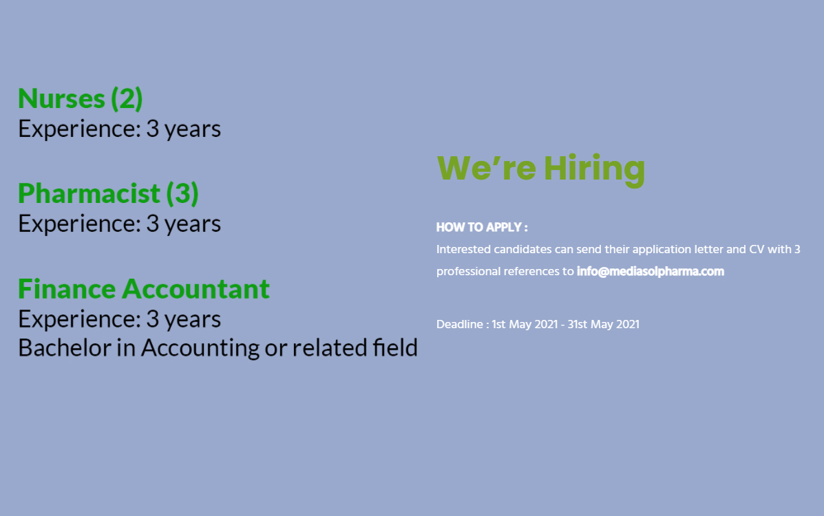 MEDIASOL has two different private companies (MEDIASOL PHARMACY LTD and MEDIASOL PHARMACEUTICAL DEPOT LTD) oriented in business relating to health sector and in partnership with public and private hospitals, research institutions, Laboratory institutions, referral & teaching hospitals and medical schools.
